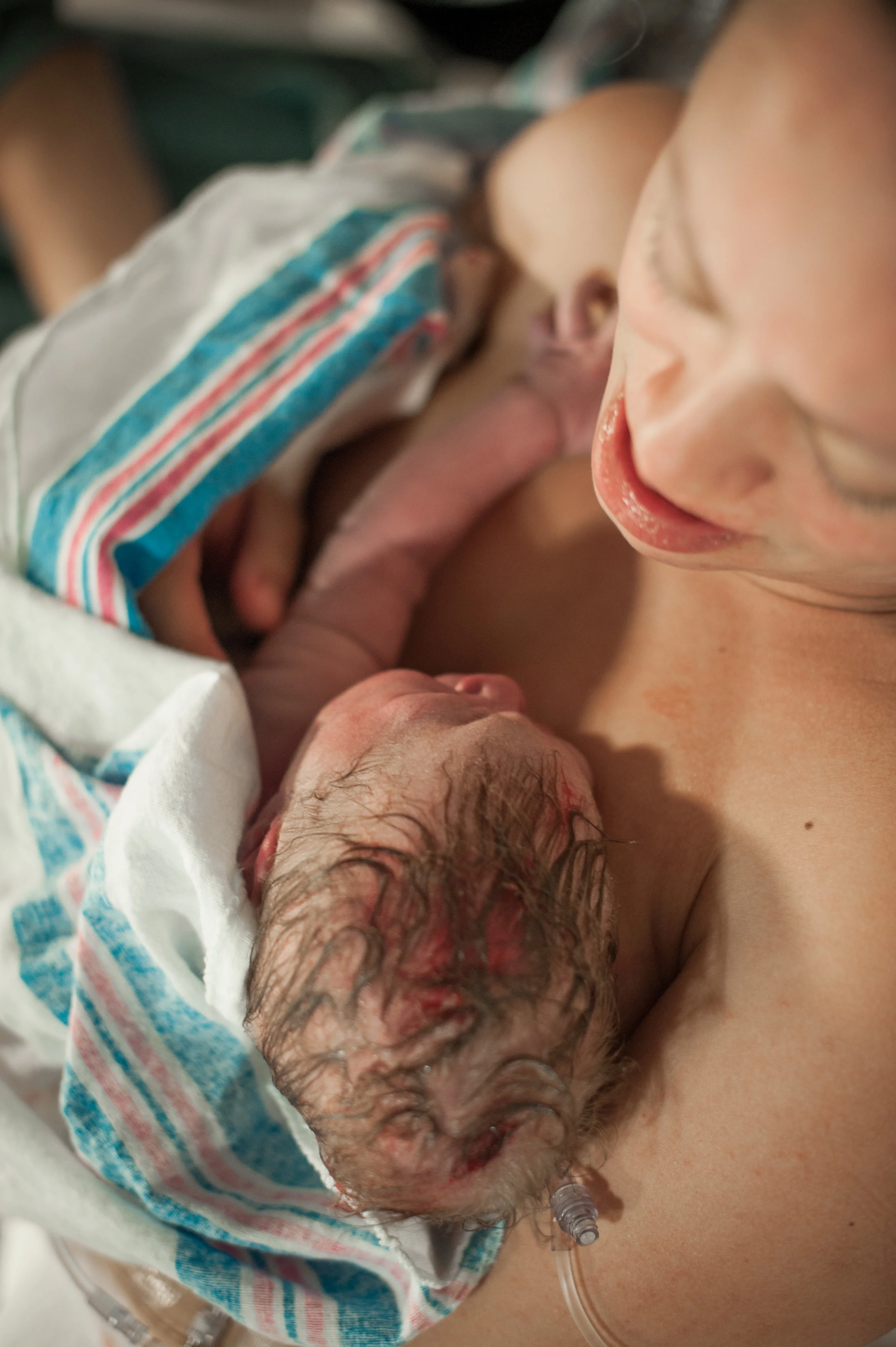 They labored at home, then at the birthing center for hours upon hours. Christine is a strong and persistent mama, and clearly her son takes after her. He got himself stuck and after a little help from some friends at the hospital, he made a safe vaginal delivery after transfer from Baby & Co.